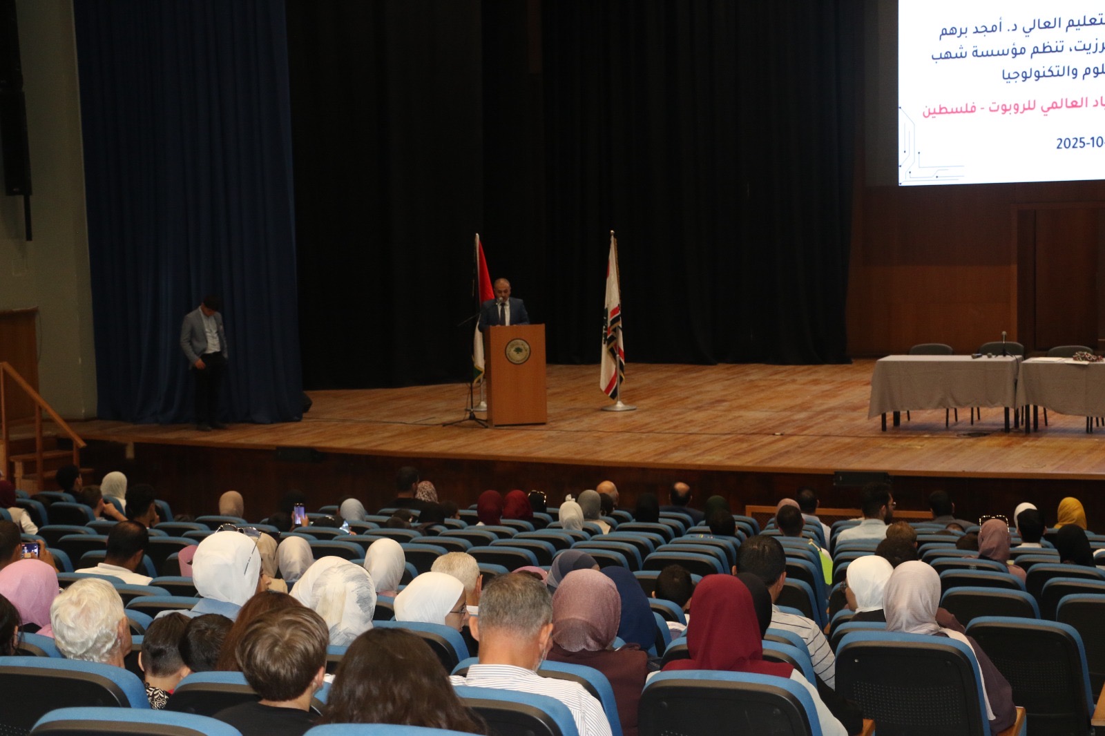 وحضر الفعاليات؛ الوكيل المساعد للشؤون التعليمية في الوزارة د. أيوب عليان، وعميد كلية الهندسة والتكنولوجيا في جامعة بيرزيت د. أحمد السعدة، ومدير عام المصادر والتقنيات بسام نعيم، والمُنظم الوطني للأولمبياد العالمي للروبوت منير عبد ربه، والمراكز الخاصة المشاركة، بالإضافة إلى طلبة المدارس المشاركين وذويهم.
