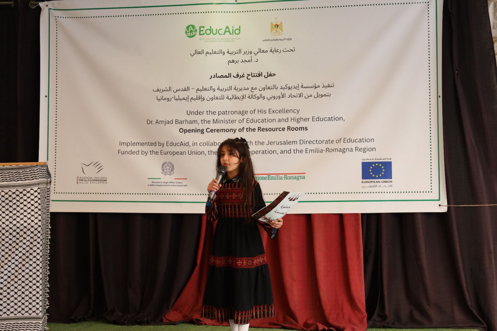 افتتحت وزارة التربية والتعليم العالي في تربية القدس بالشراكة مع مؤسسة الإديوكيد الإيطالية، 21 غرفة مصادر جديدة، وذلك ضمن مشروع "تعزيز وصمود التعليم في القدس" المنفّذ من قبل مؤسسة EducAid، بدعم من الاتحاد الأوروبي، والوكالة الإيطالية للتعاون الإنمائي (AICS)، وإقليم إيميليا رومانيا، حيث تم تنظيم الفعالية المركزية في قلب مدرسة زهرة المدائن.