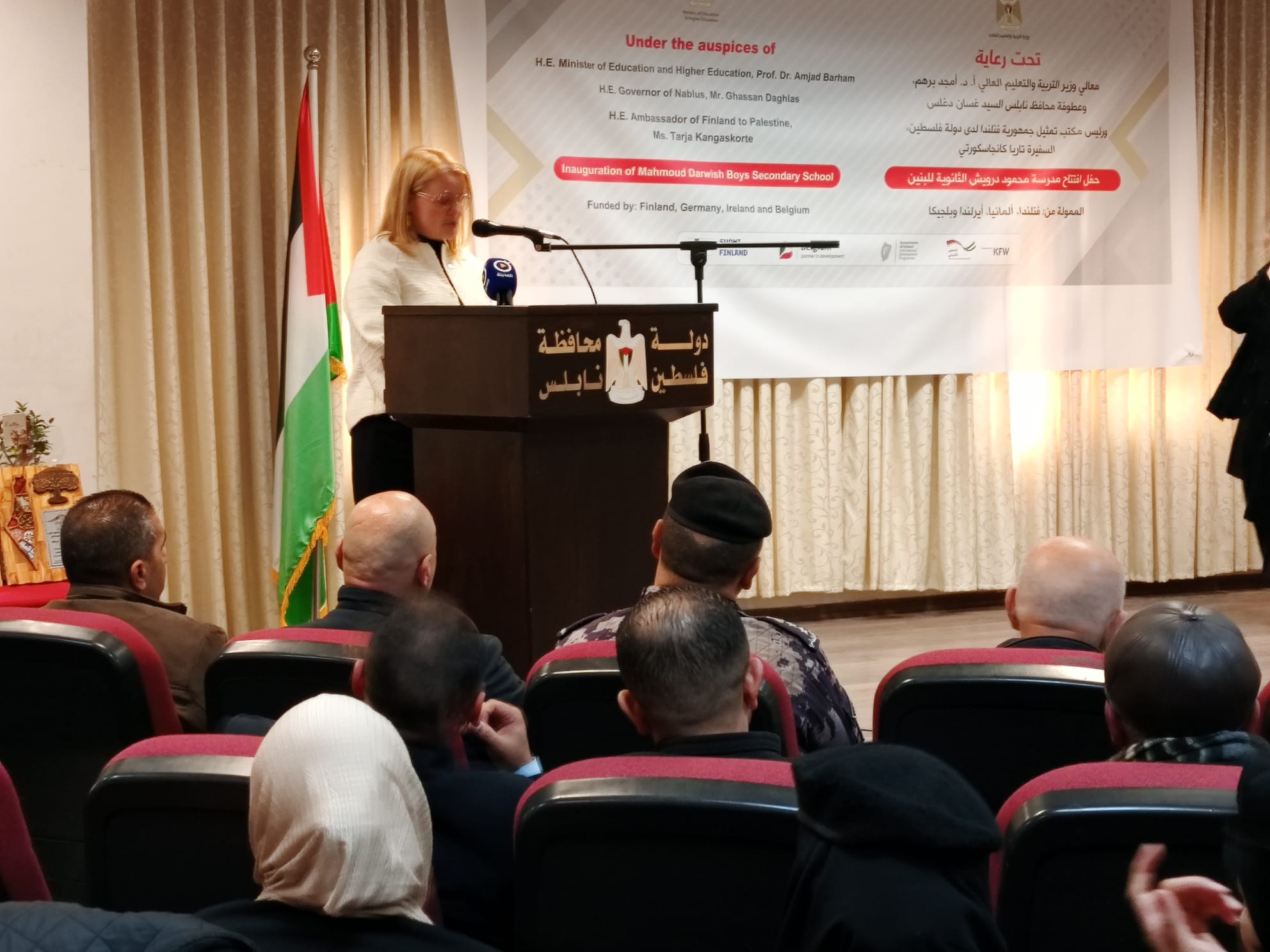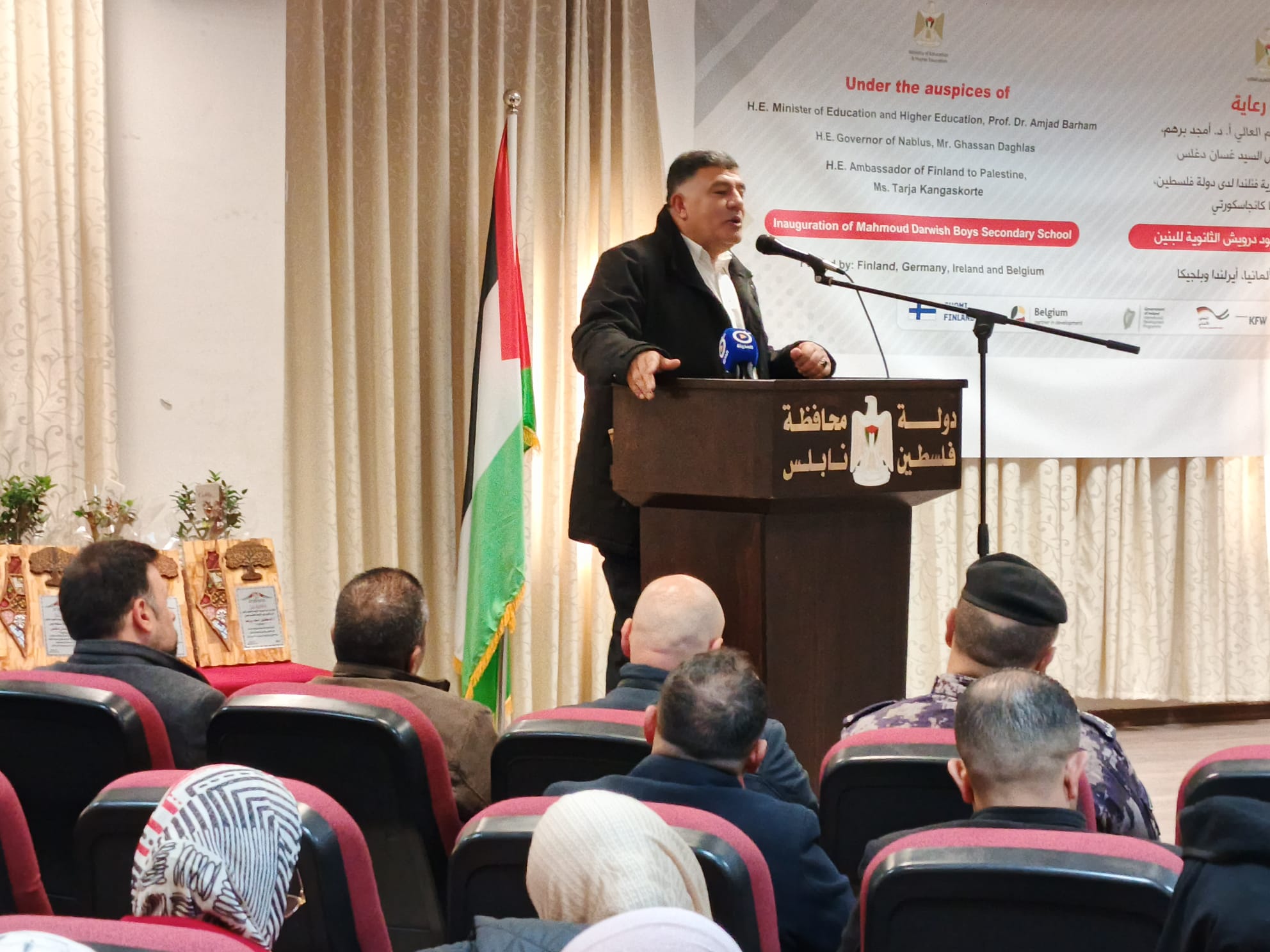 افتتح وزير التربية والتعليم العالي أ.د. أمجد برهم، ومحافظ محافظة نابلس غسان دغلس، وممثلة فنلندا لدى فلسطين تاريا كانجاسكورتي، والقنصل البلجيكي العام أنيك فان كلاستر، اليوم الأربعاء، مدرسة محمود درويش الثانوية للبنين في مديرية تربية نابلس.