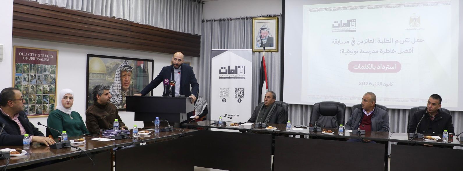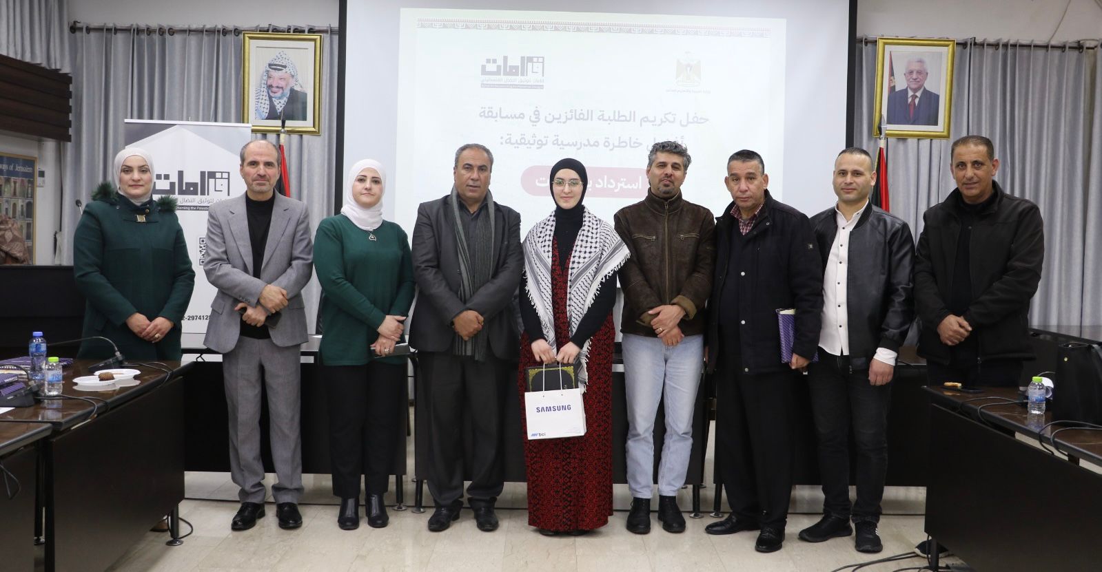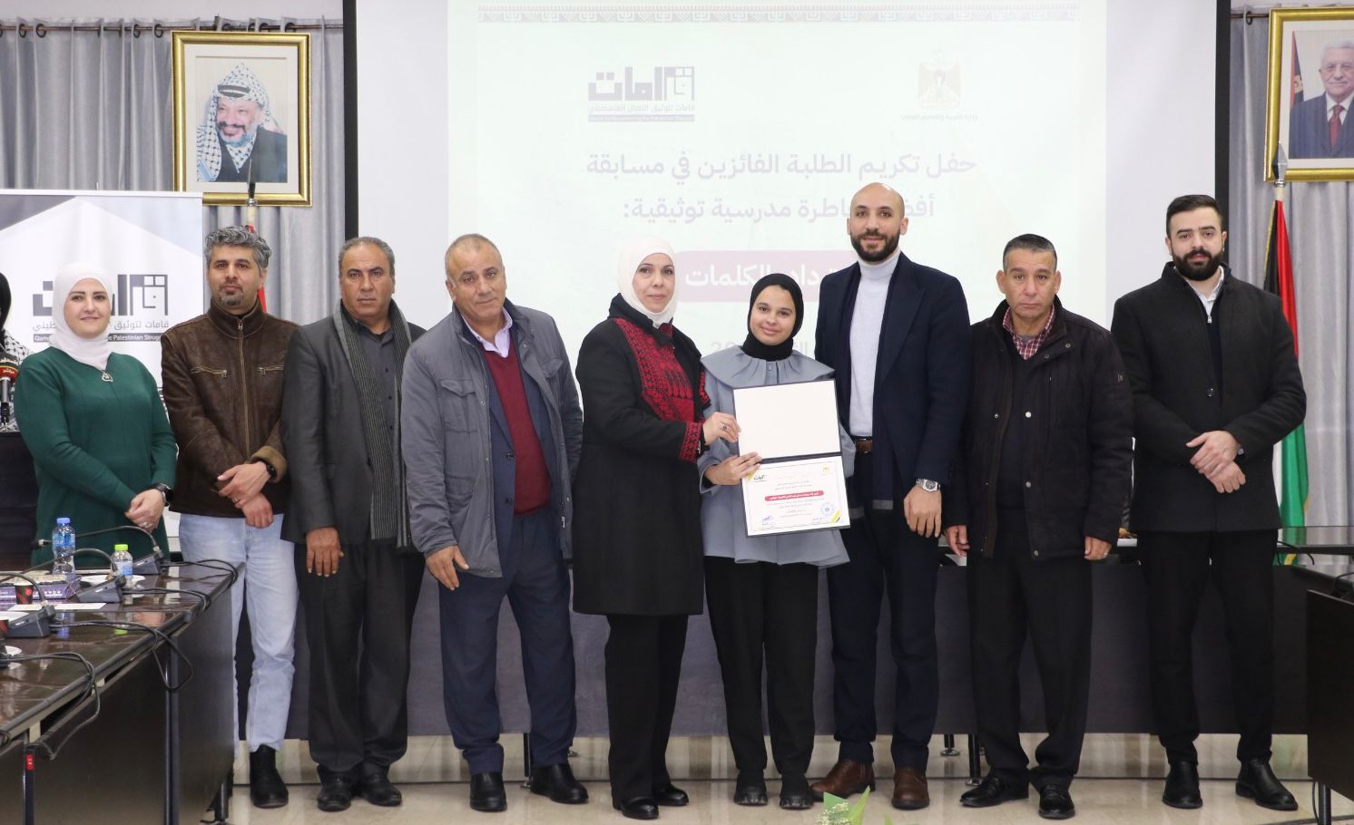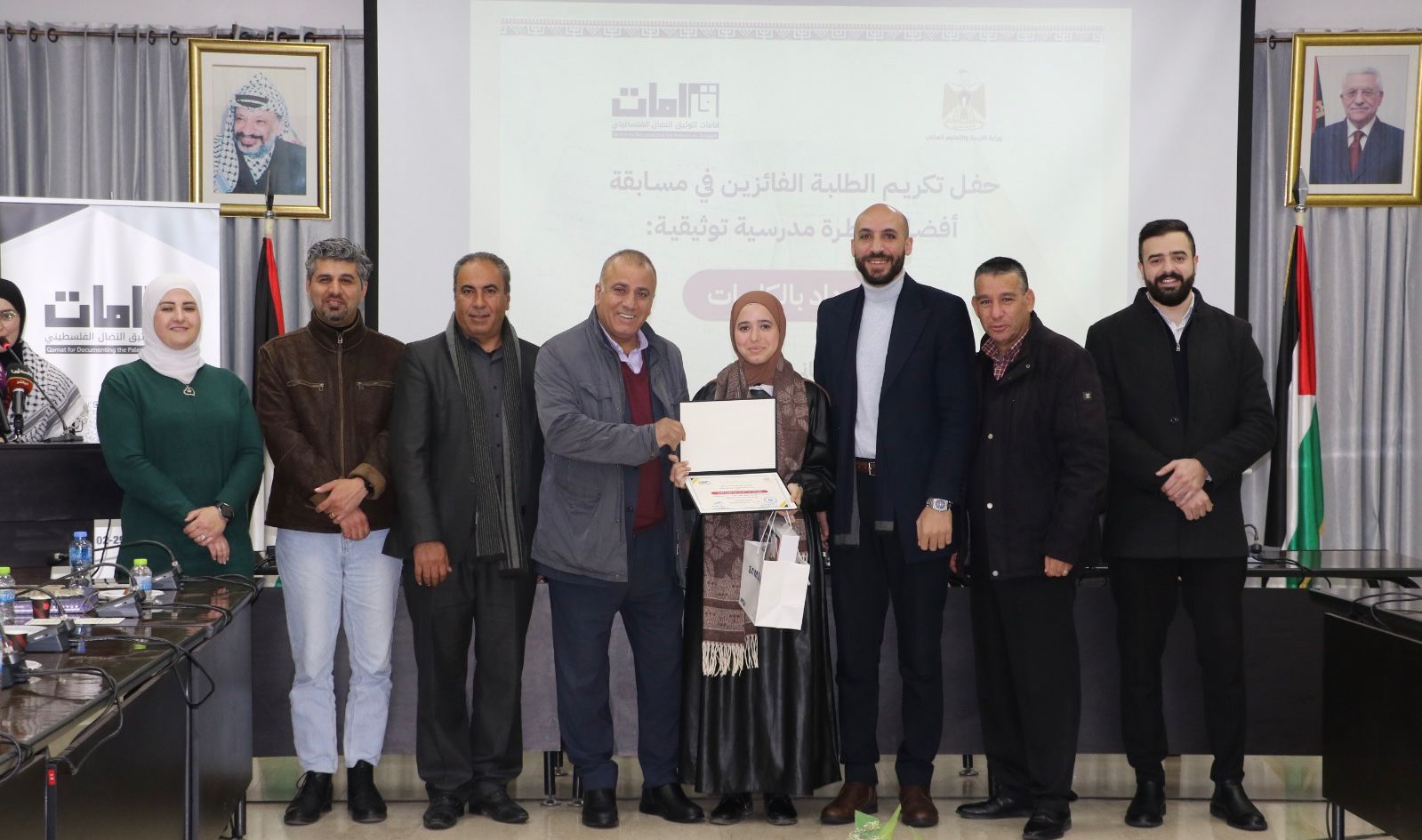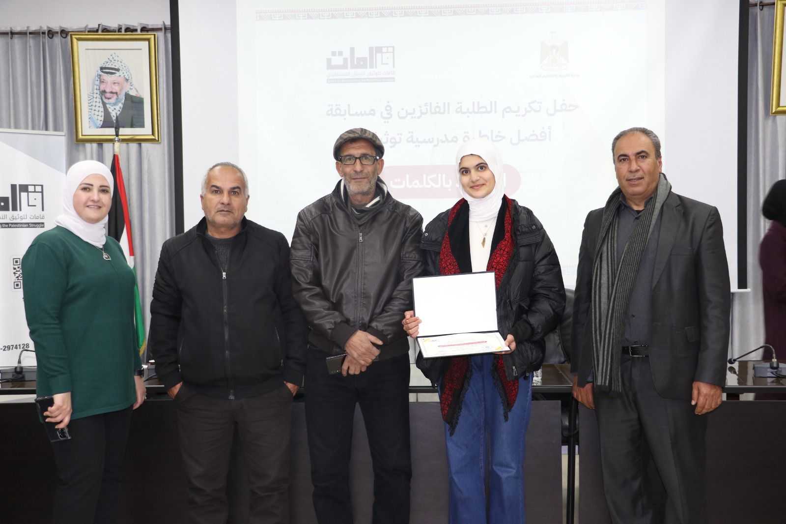 كرّمت وزارة التربية والتعليم العالي، ومؤسسة قامات لتوثيق النضال الفلسطيني، اليوم الأربعاء، الطلبة الفائزين في مسابقة أفضل خاطرة مدرسية وطنية توثيقية حملت عنوان: "استرداد بالكلمات"، وجاءت استلهاماً من فيلم قامات الوثائقي "استرداد مؤجل" للمخرج الأسير عبد الله معطان، الذي يوثق معاناة ذوي الشهداء المحتجزة جثامينهم في ثلاجات الاحتلال.