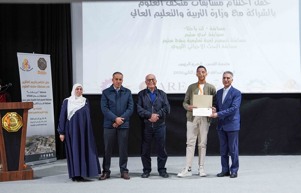 نظمت وزارة التربية والتعليم العالي، من خلال الإدارة العامة للإبداع والتميز، بالشراكة مع متحف العلوم في جامعة القدس الحفل الختامي لتكريم الفائزين في مسابقات متحف العلوم: "كن باحثًا" ، تحدي" STEAM " مشكلة من حياتنا اليومية، تصميم لعبة تعليمية بنهج ستيم، والبحث الإجرائي التربوي في العلوم الطبيعية، بحضور ممثلين عن الوزارة والجامعة ومعلمين من المدارس المشاركة في المسابقات.