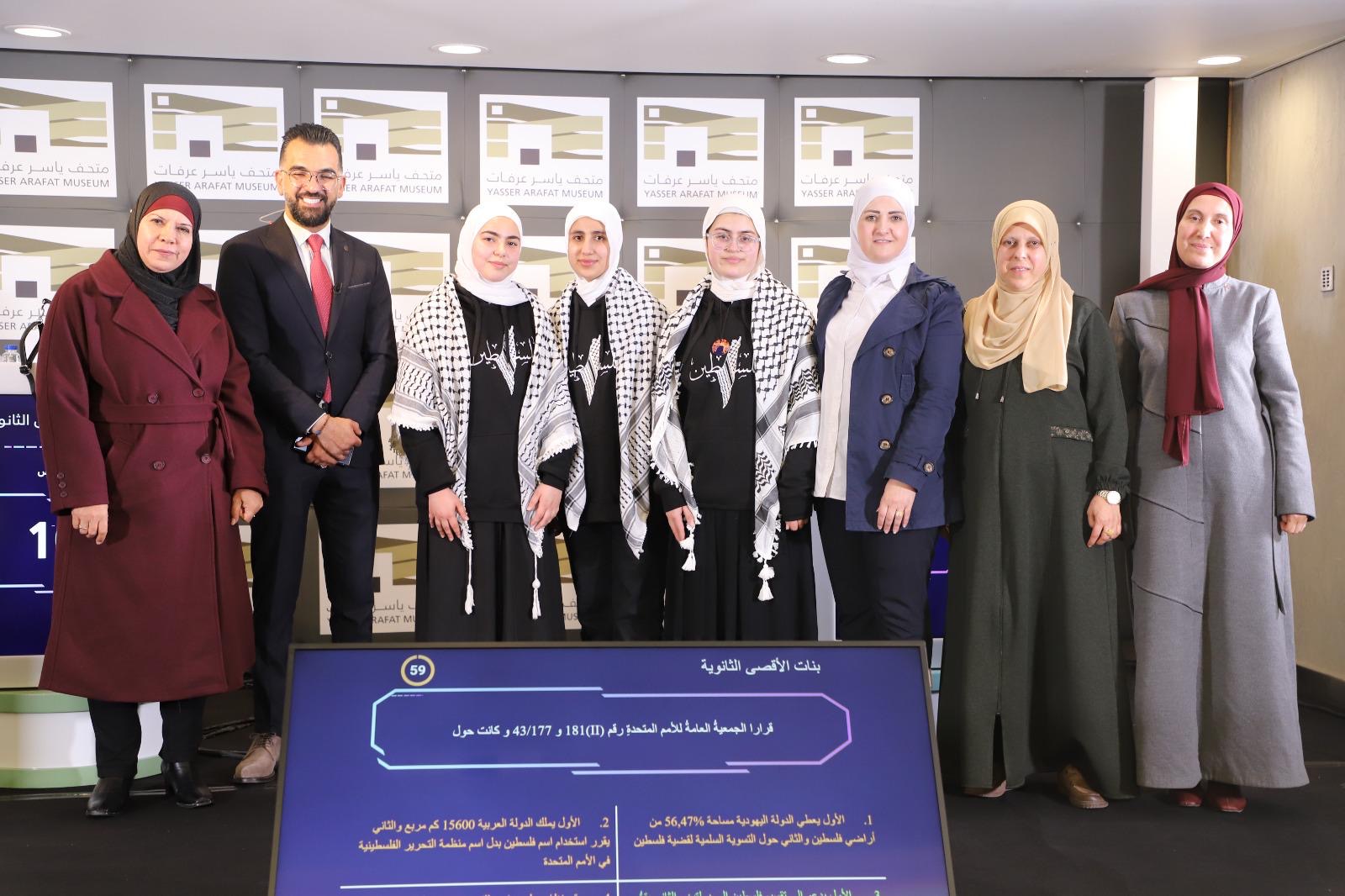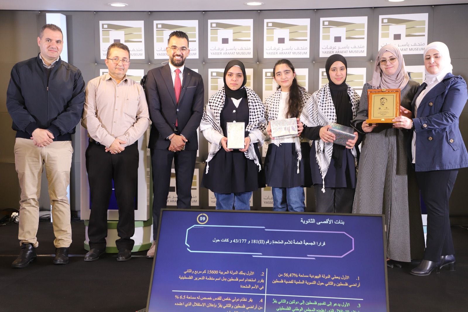 وأشار إلى ضرورة التثقيف الوطني البعيد عن المادة المدرسية، وضرورة رفع المعرفة الوطنية في ظل ما تمر به القضية الفلسطينية، وأن الطلبة همّ رواد المستقبل المدافعين عن تاريخ فلسطين.، مؤكداً الالتزام الثابت لمؤسسة ياسر عرفات بتعزيز السردية الوطنية الفلسطينية وتوثيقها ونشرها في مواجهة الرواية الزائفة للاحتلال.