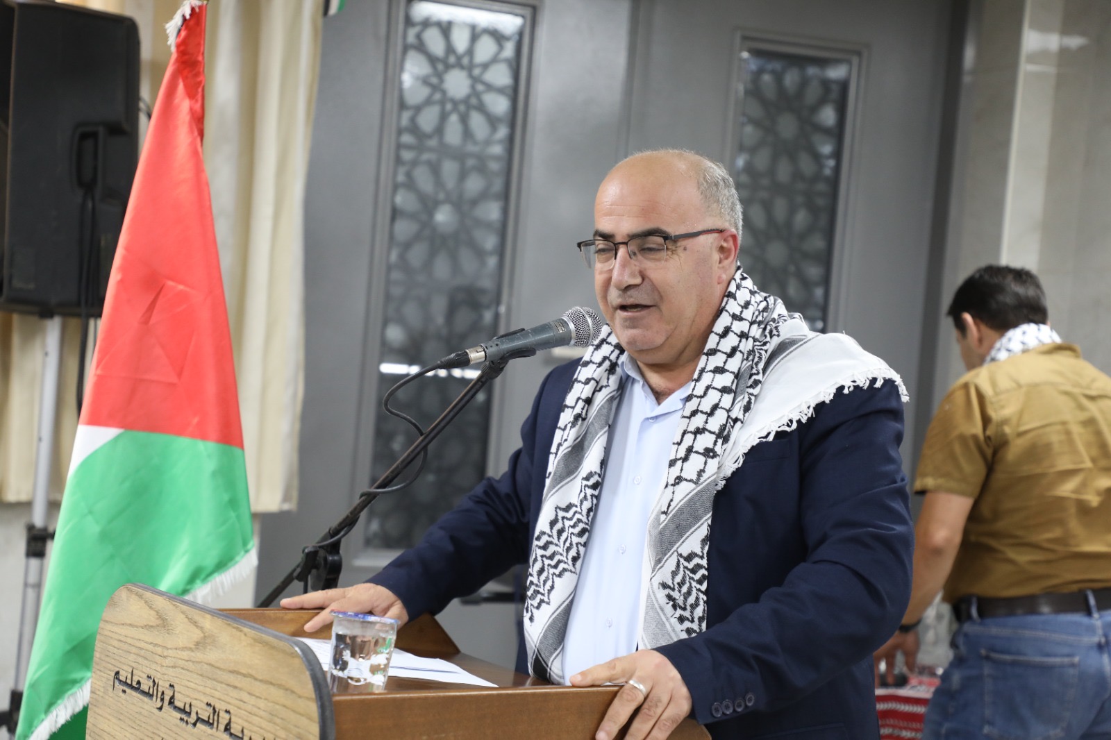 وفي كلمته؛ أكد مدير عام تربية الخليل عاطف الجمل الشراكة الحقيقية بين التربية والمجتمع المحلي من أجل تعزيز المنظومة التعليمية في مدارس الخليل، مقدماً شكره لكل الداعمين للتعليم؛ خاصاً بالذكر أستوديو القدس على الاهتمام بتغطية الشأن التربوي في الخليل.