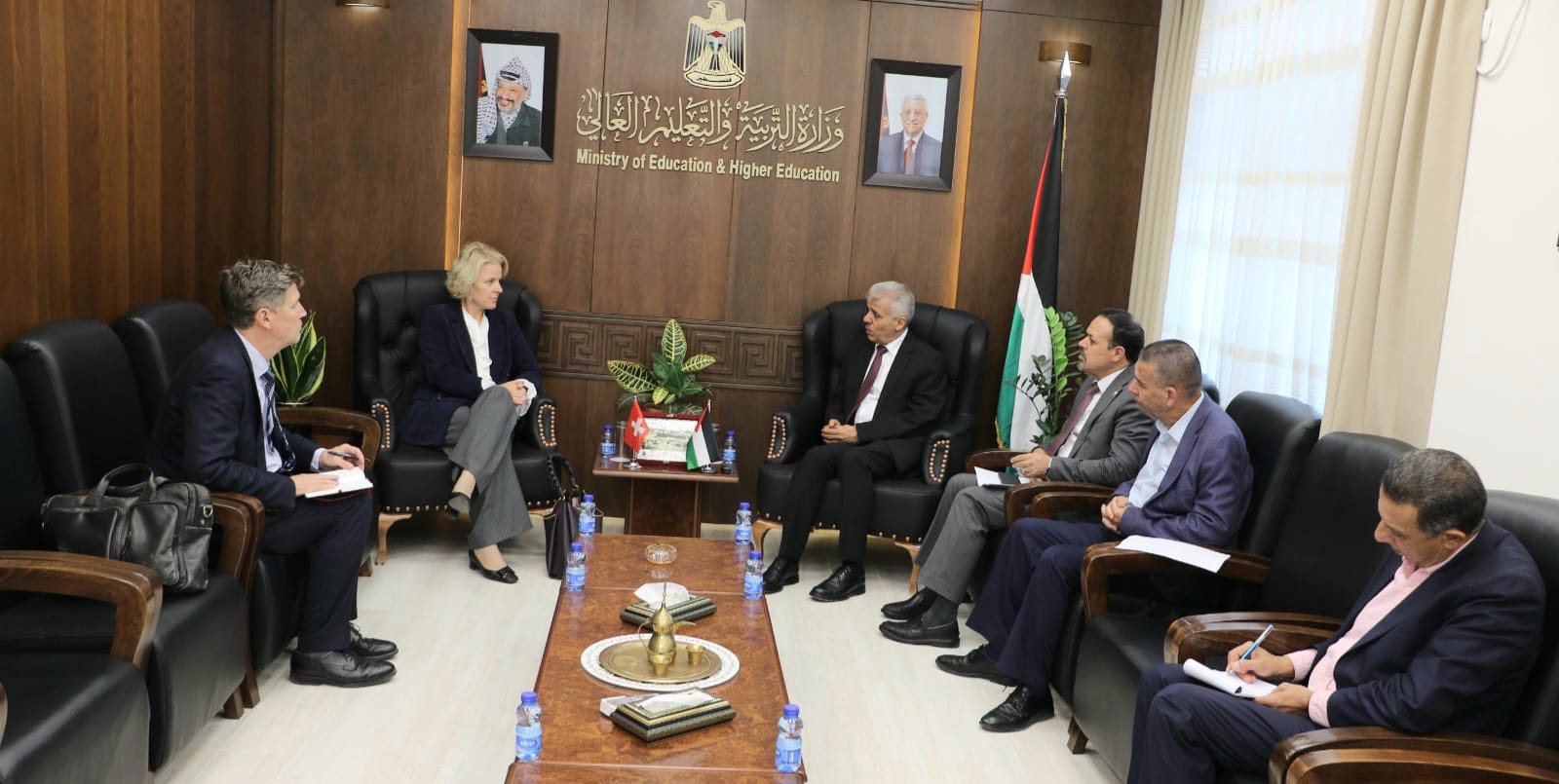 استقبل وزير التربية والتعليم العالي أ.د. أمجد برهم، سفيرة سويسرا لدى فلسطين آن ليز كاتين هينين، حيث جرى بحث آفاق التعاون المشترك بين الجانبين لدعم قطاع التعليم في فلسطين.