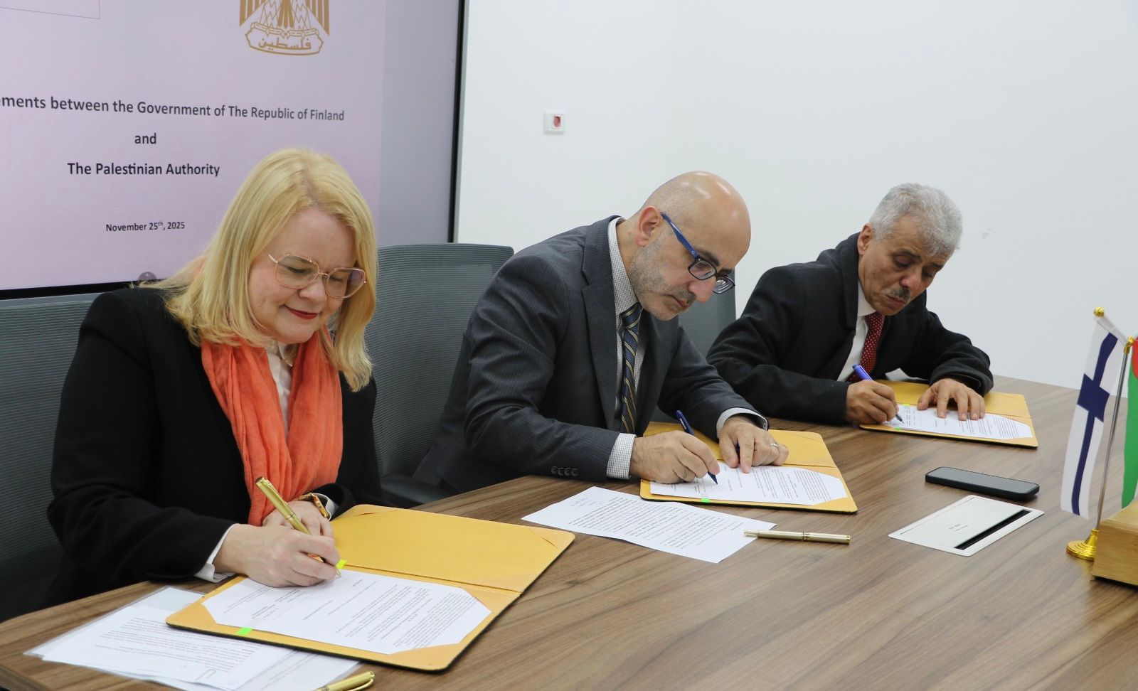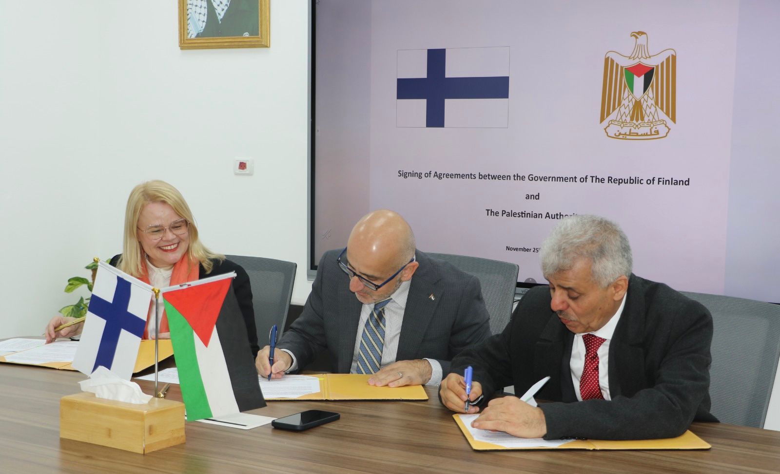 وشهد التوقيع حضور ممثلي الجانبين الفلسطيني والفنلندي.