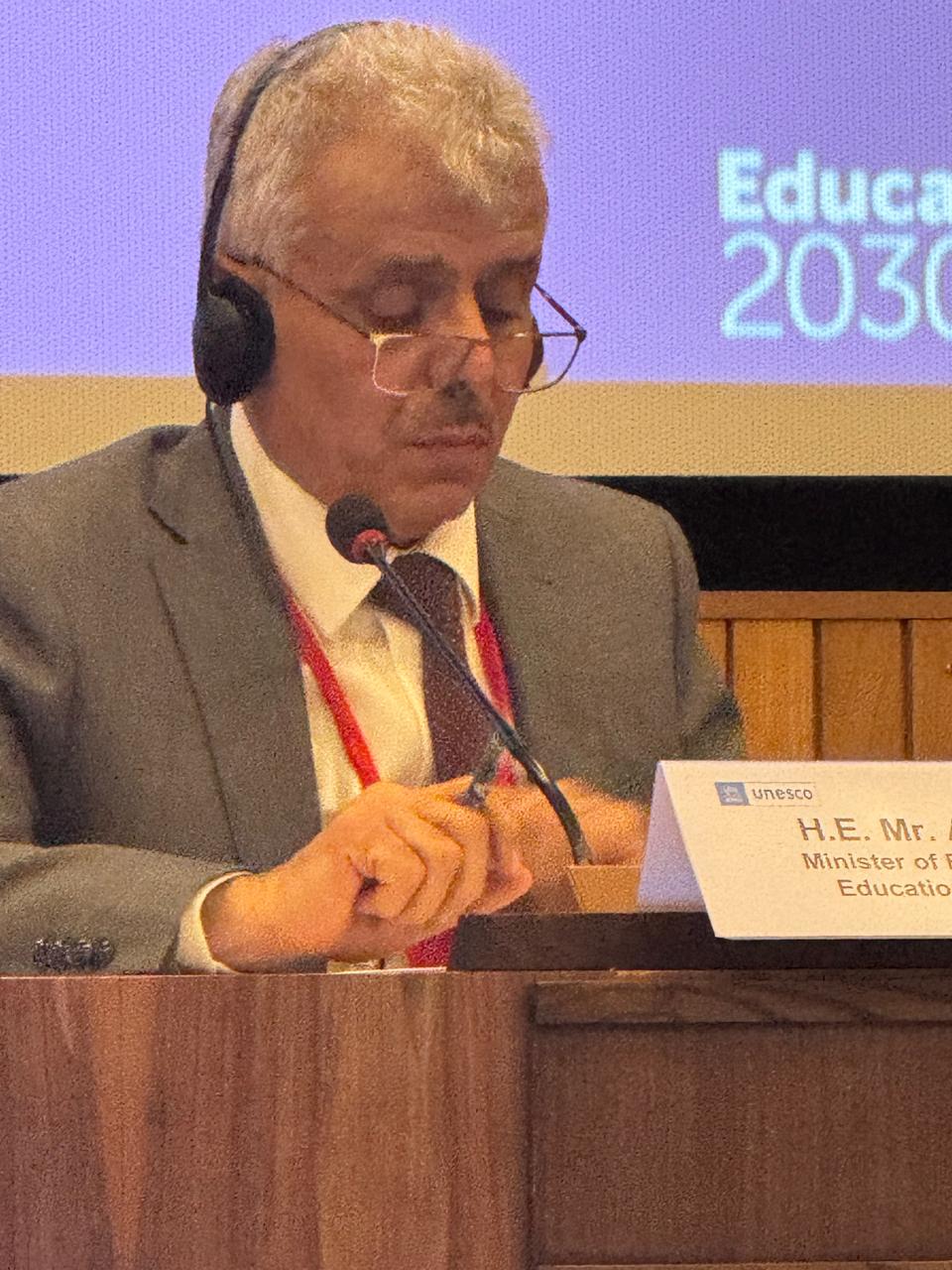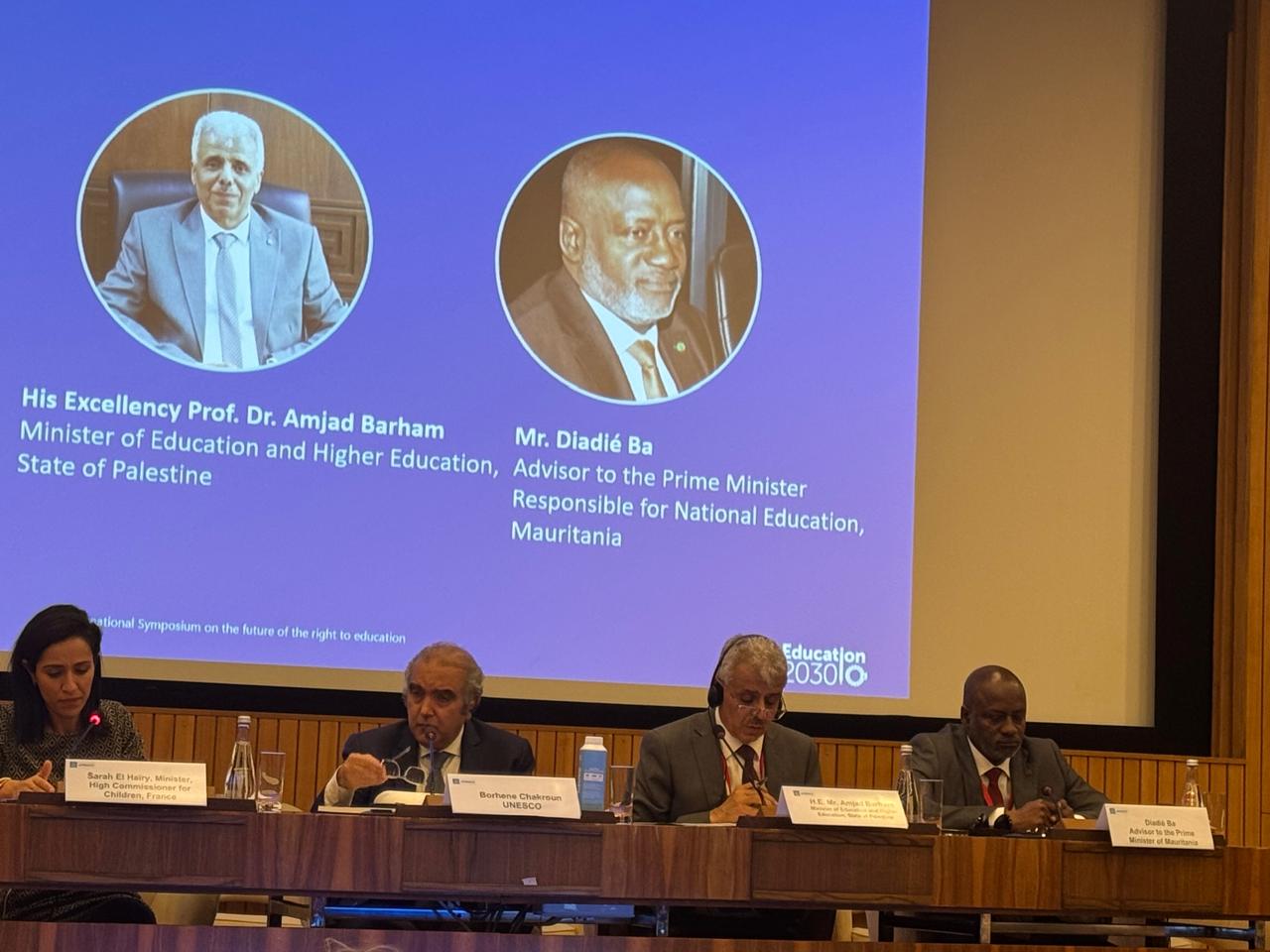 شارك وزير التربية والتعليم العالي أ.د. أمجد برهم، اليوم، في أعمال الندوة الدولية التي نظمتها منظمة اليونسكو في باريس، حول مستقبل الحق في التعليم، بمشاركة وزراء ومسؤولين دوليين وخبراء تربويين من مختلف أنحاء العالم.