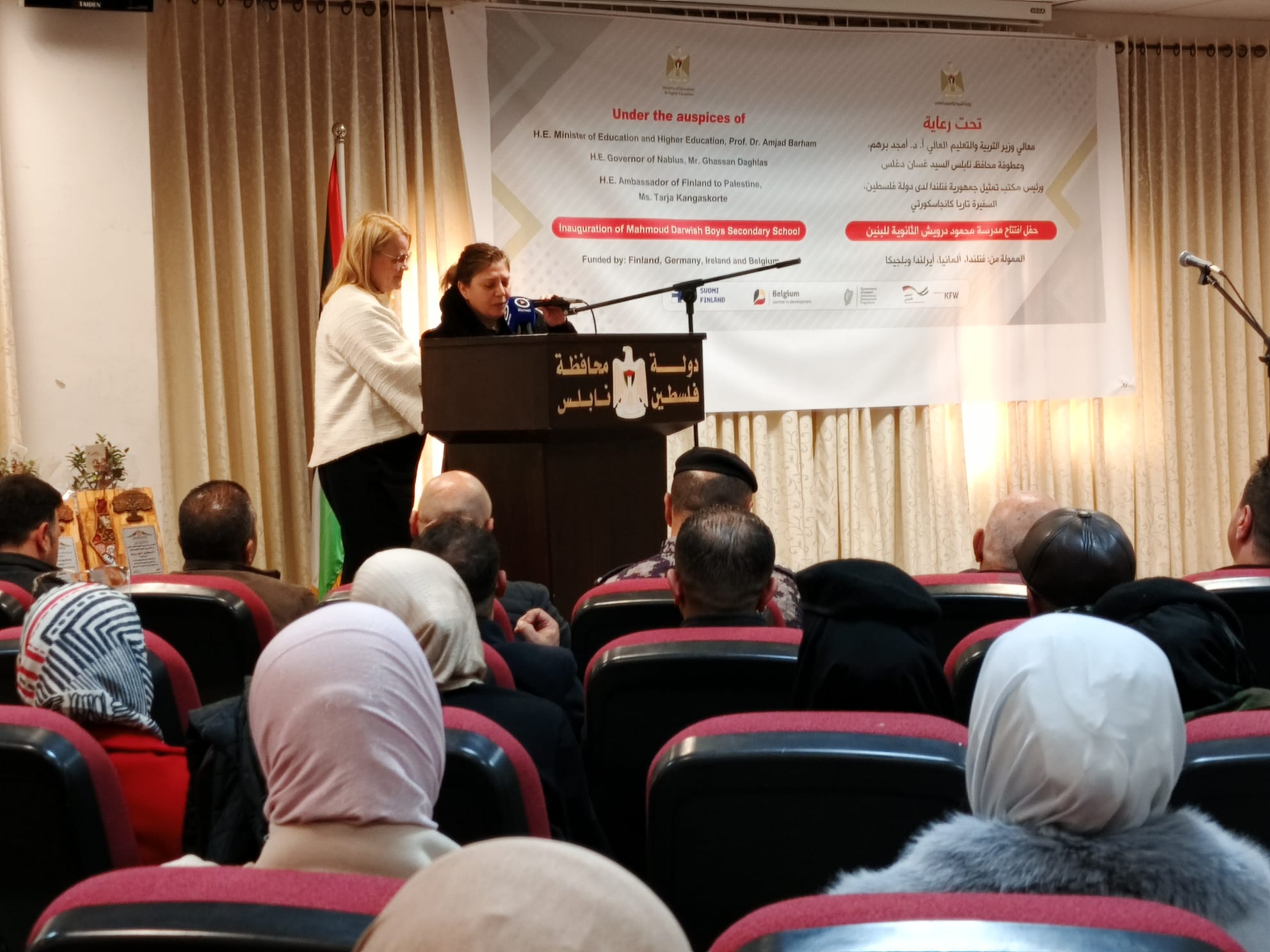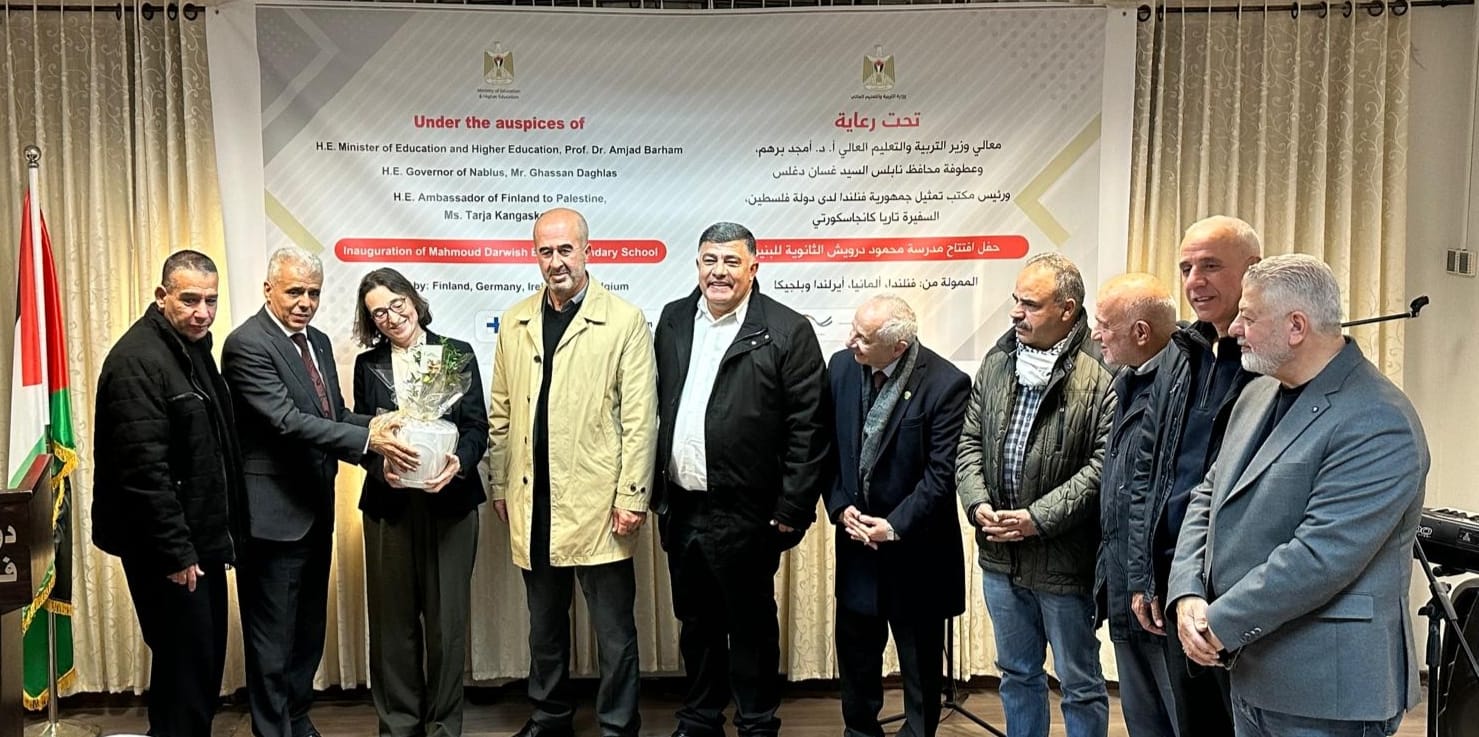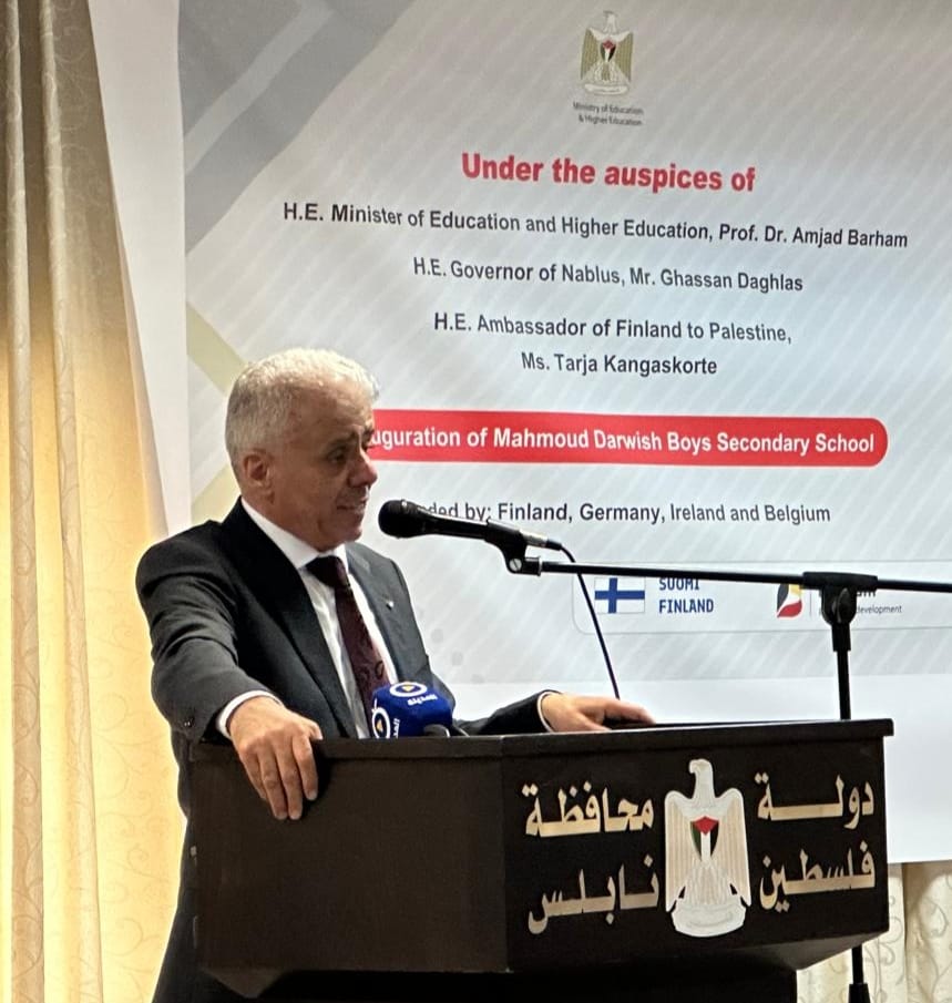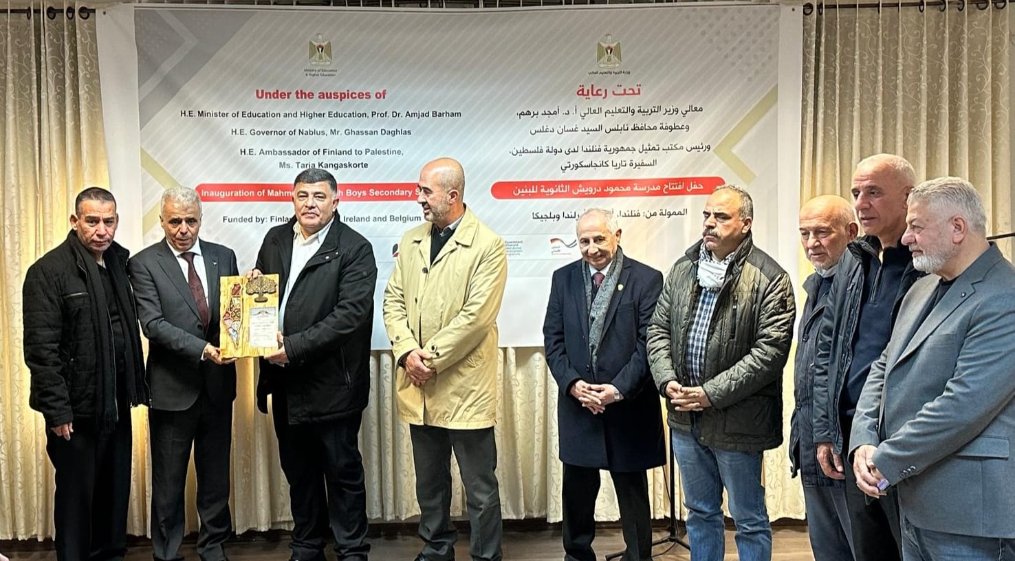 افتتح وزير التربية والتعليم العالي أ.د. أمجد برهم، ومحافظ محافظة نابلس غسان دغلس، وممثلة فنلندا لدى فلسطين تاريا كانجاسكورتي، والقنصل البلجيكي العام أنيك فان كلاستر، اليوم الأربعاء، مدرسة محمود درويش الثانوية للبنين في مديرية تربية نابلس.