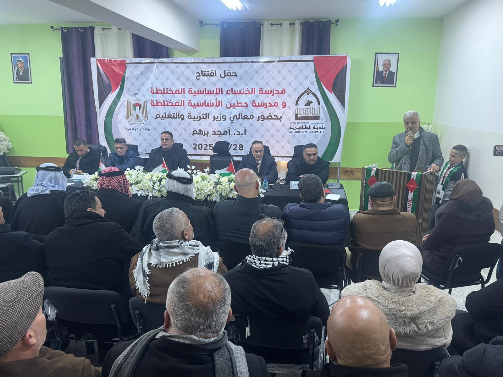 جاء ذلك بمشاركة وحضور وزير التربية والتعليم العالي أ.د. أمجد برهم، ونائب محافظ محافظة الخليل اللواء تيسير الفاخوري، والوكيل المساعد للشؤون الطلابية صادق الخضور، ومدير عام الأبنية م. وسام نخلة، ومدير عام تربية جنوب الخليل د. ياسر صالح، ورئيس بلدية الظاهرية م. علي العوايصة، ونائب رئيس بلدية دورا فوزي أبو هليل ، وأمين سر حركة فتح في جنوب الخليل إياد ريان، والناطق باسم فتح ماهر النمورة، واتحاد المعلمين والمكتب الحركي، وحشد من المؤسسات الرسمية والقوى الوطنية والمجتمع المحلي والأسرة التربوية.
