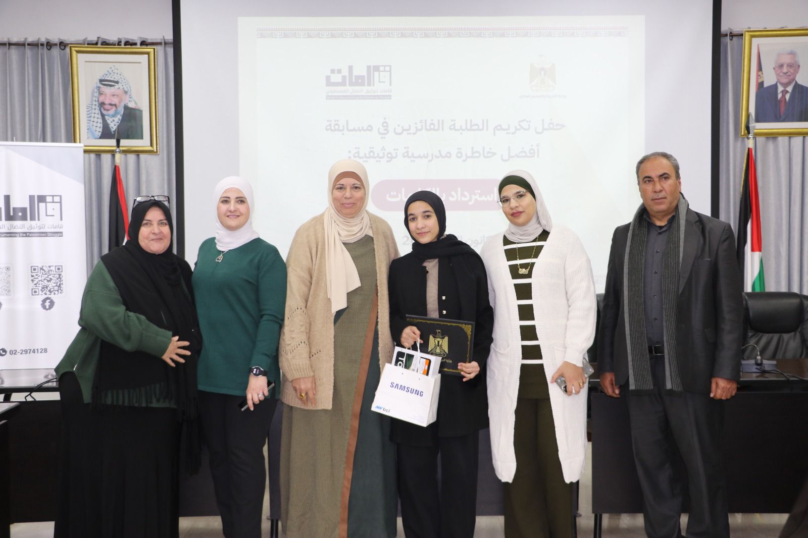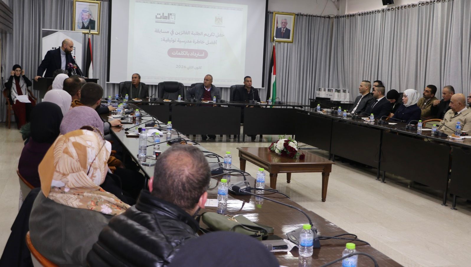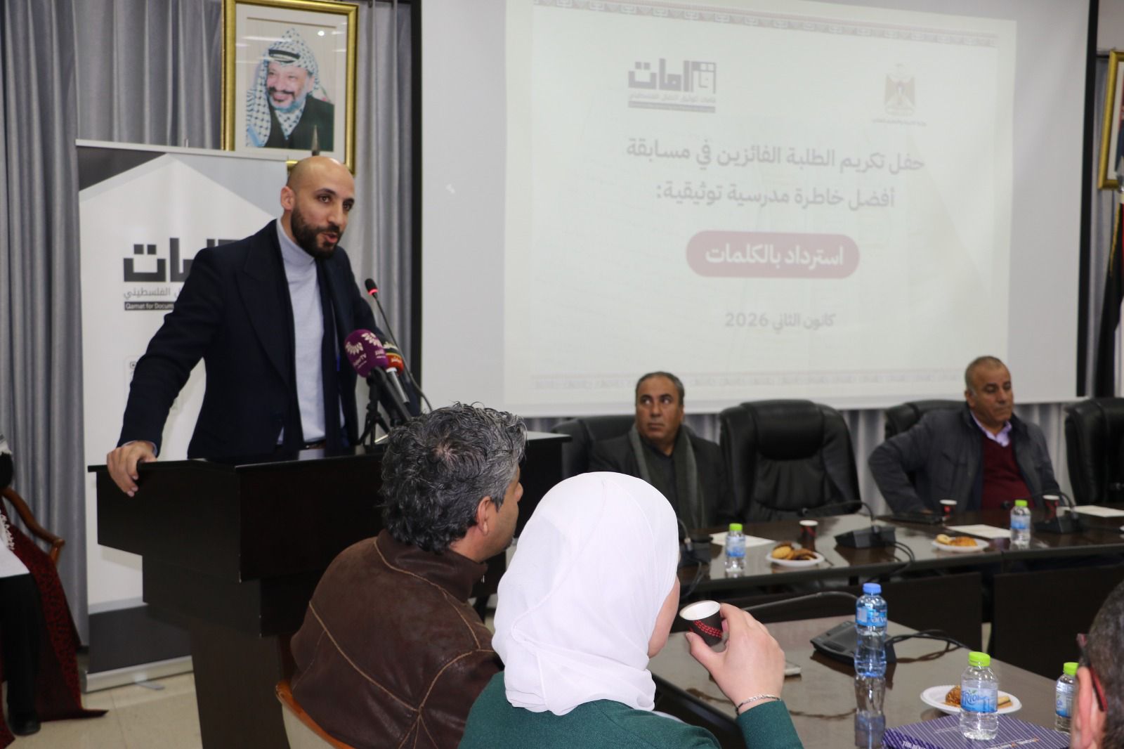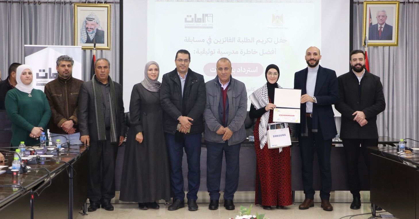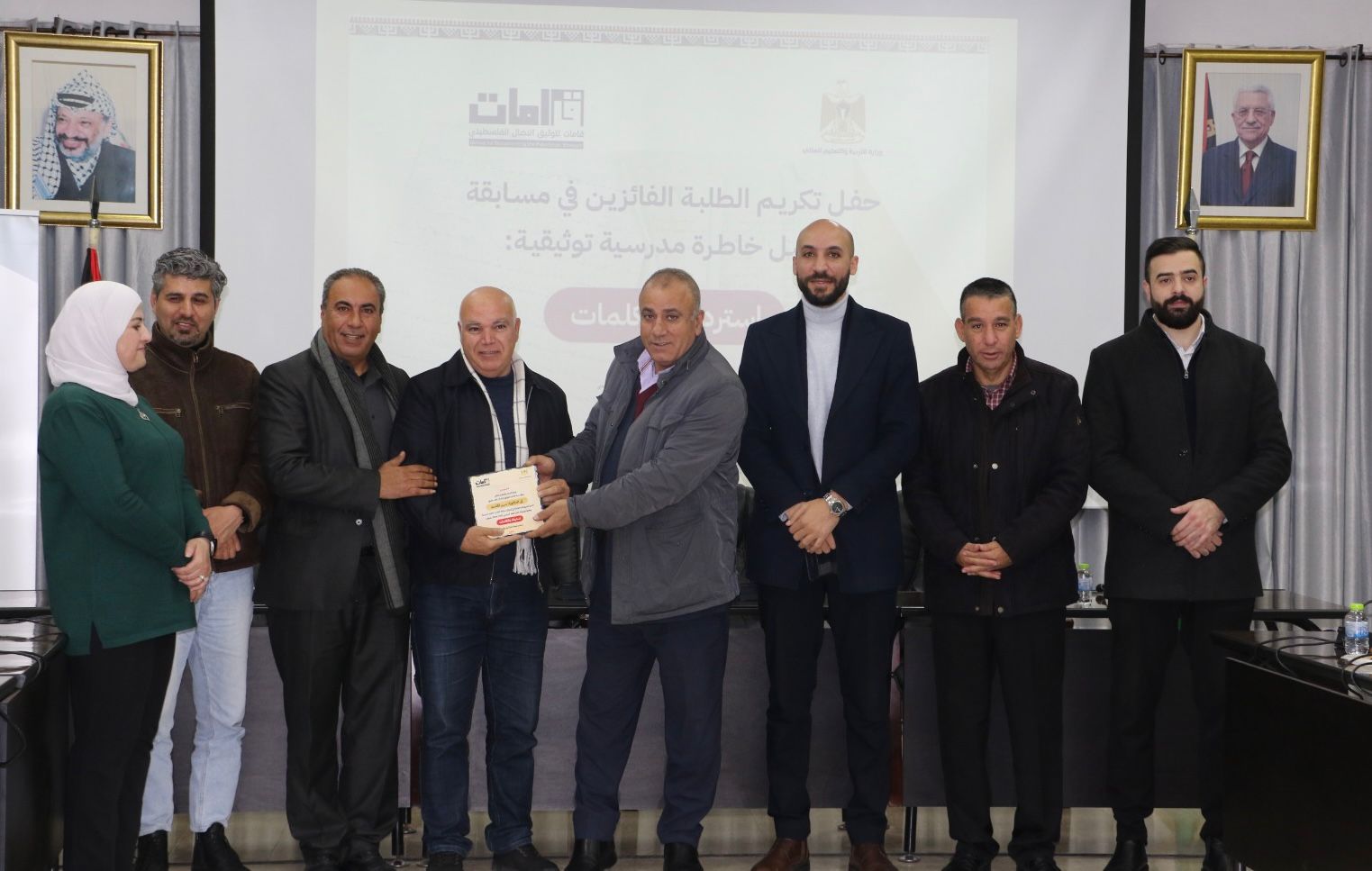 كرّمت وزارة التربية والتعليم العالي، ومؤسسة قامات لتوثيق النضال الفلسطيني، اليوم الأربعاء، الطلبة الفائزين في مسابقة أفضل خاطرة مدرسية وطنية توثيقية حملت عنوان: "استرداد بالكلمات"، وجاءت استلهاماً من فيلم قامات الوثائقي "استرداد مؤجل" للمخرج الأسير عبد الله معطان، الذي يوثق معاناة ذوي الشهداء المحتجزة جثامينهم في ثلاجات الاحتلال.