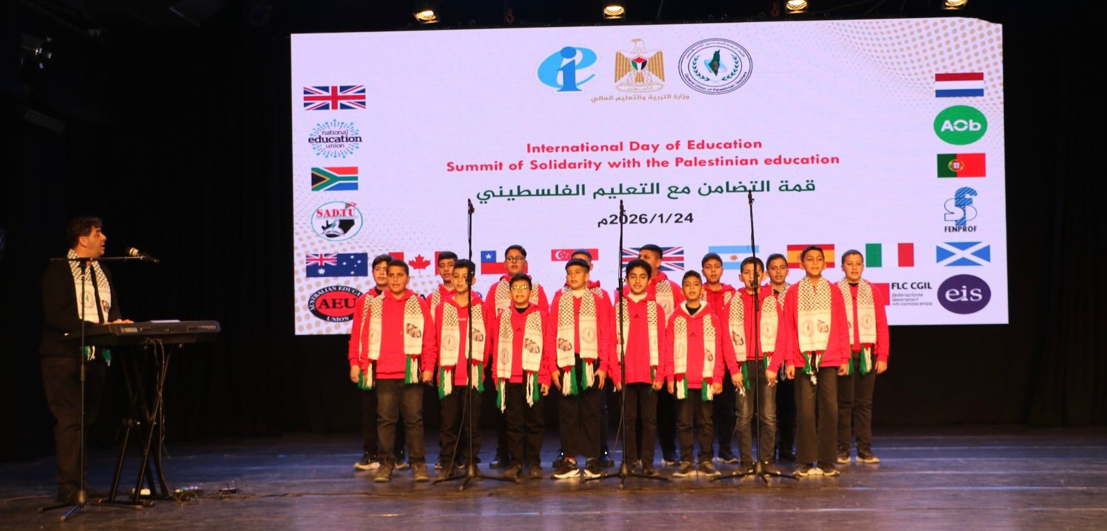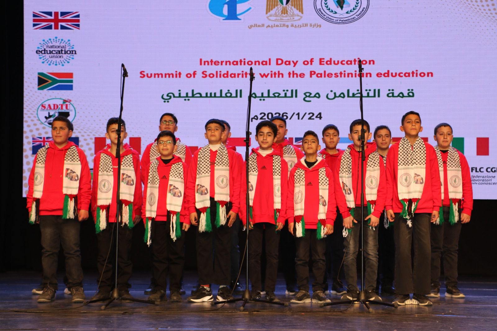 عقدت وزارة التربية والتعليم العالي، والدولية للتعليم، والاتحاد العام للمعلمين الفلسطينيين، اليوم السبت، "قمة التضامن مع التعليم الفلسطيني"، تزامناً مع فعاليات اليوم الدولي للتعليم.