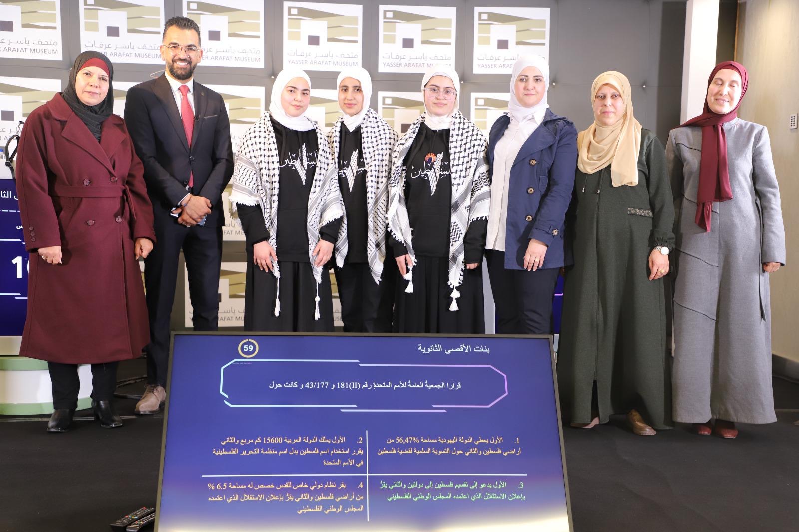 وأشار إلى ضرورة التثقيف الوطني البعيد عن المادة المدرسية، وضرورة رفع المعرفة الوطنية في ظل ما تمر به القضية الفلسطينية، وأن الطلبة همّ رواد المستقبل المدافعين عن تاريخ فلسطين.، مؤكداً الالتزام الثابت لمؤسسة ياسر عرفات بتعزيز السردية الوطنية الفلسطينية وتوثيقها ونشرها في مواجهة الرواية الزائفة للاحتلال.